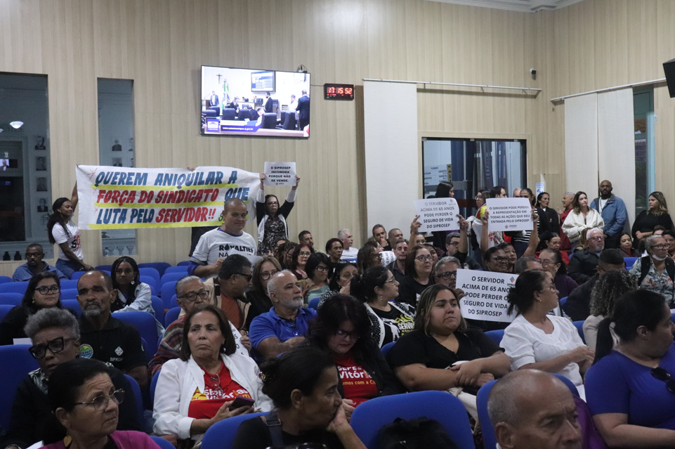 Após a aprovação, em primeiro turno, do projeto de lei do vereador Anderson de Matos (Republicanos), que pretende alterar a Lei Municipal nº 9.087, servidores filiados e apoiadores do SIPROSEP lotaram o auditório da Câmara de Vereadores de Campos.